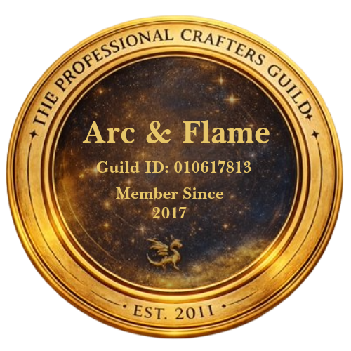 Now, as Arc & Flame, Sharon creates striking pieces in recycled sterling silver—minimalist geometric forms, textured finishes, and raw molten details that feel both ancient and modern. Each piece carries the mark of its maker and the quiet story of its fire.